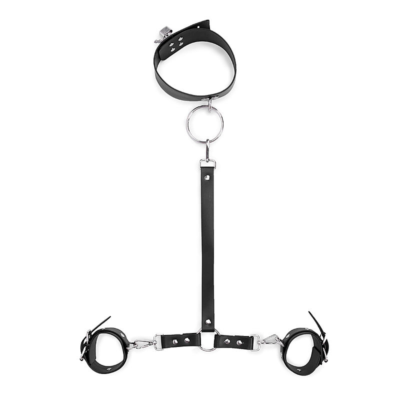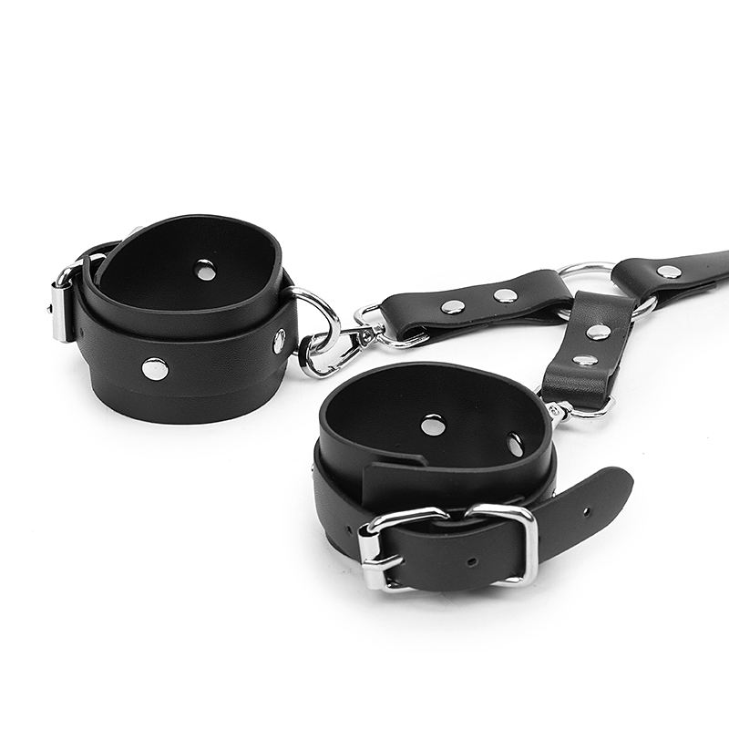 อุปกรณ์สำหรับผู้ใหญ่ Alfa ชุดรัดร่างกาย BDSM ผ้ารัดตัวอีโรติกเซ็กซี่สำหรับผู้หญิง สีดำ สายรัดหลัง หนัง PU ปลอกคอหนัง พร้อมกุญแจมือ