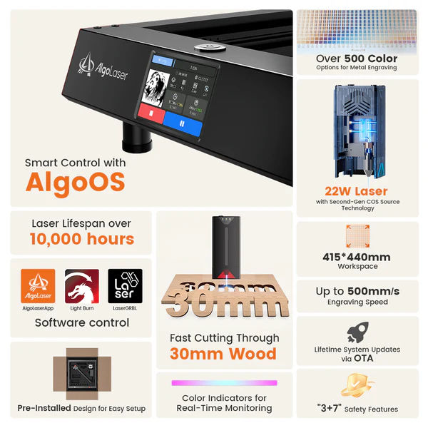 Algolaser Delta 20W เครื่องแกะสลักเลเซอร์ไดโอดติดตั้งไว้ล่วงหน้าออกแบบสำหรับติดตั้งอย่างรวดเร็วโมดูลเลเซอร์ที่ออกแบบมาเป็นพิเศษ