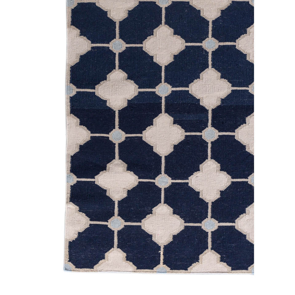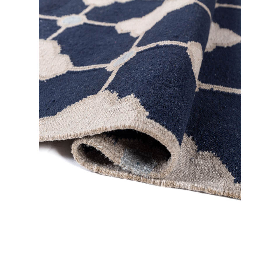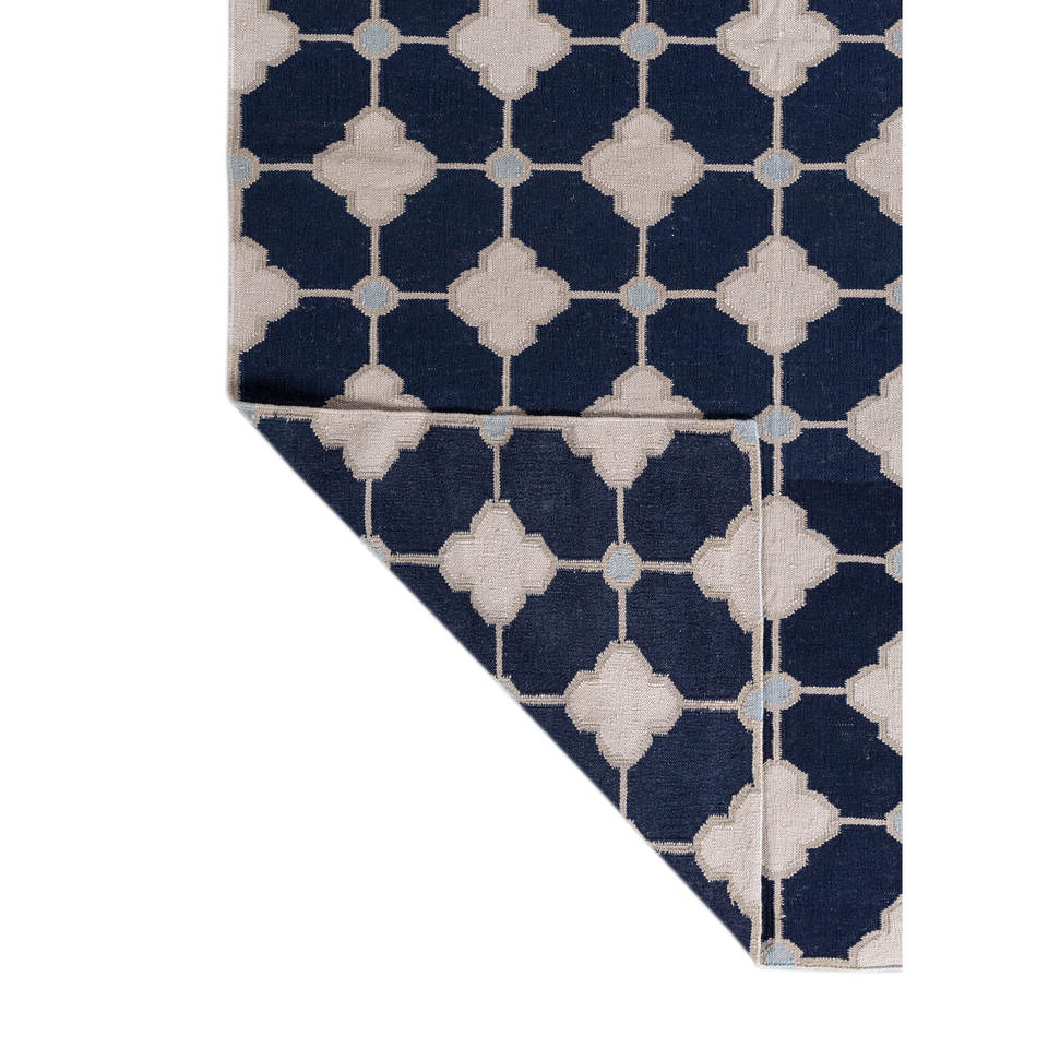 อัลฮัมบรา บลู แฟลต วีฟส์พรมขนสัตว์ขนาดใหญ่ 9x12 รูปทรงสี่เหลี่ยมผืนผ้าลายเรขาคณิตห้องนั่งเล่นพรมปูพื้นทางเดินรุ่น ADWL-13315