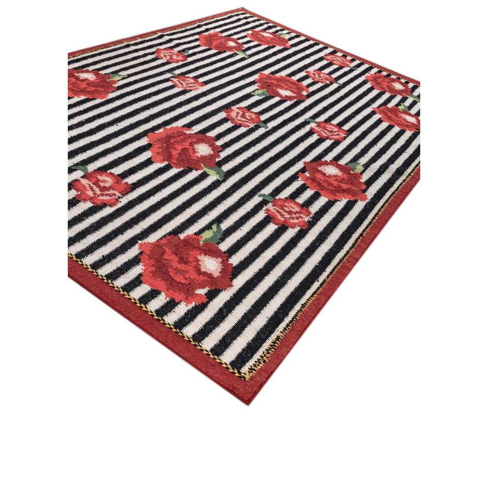 พรมขนสัตว์ทอลายเรียบอัลฮัมบรา สีเทาและสีดำ ลายพิมพ์-ADWL-13235