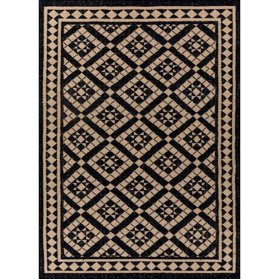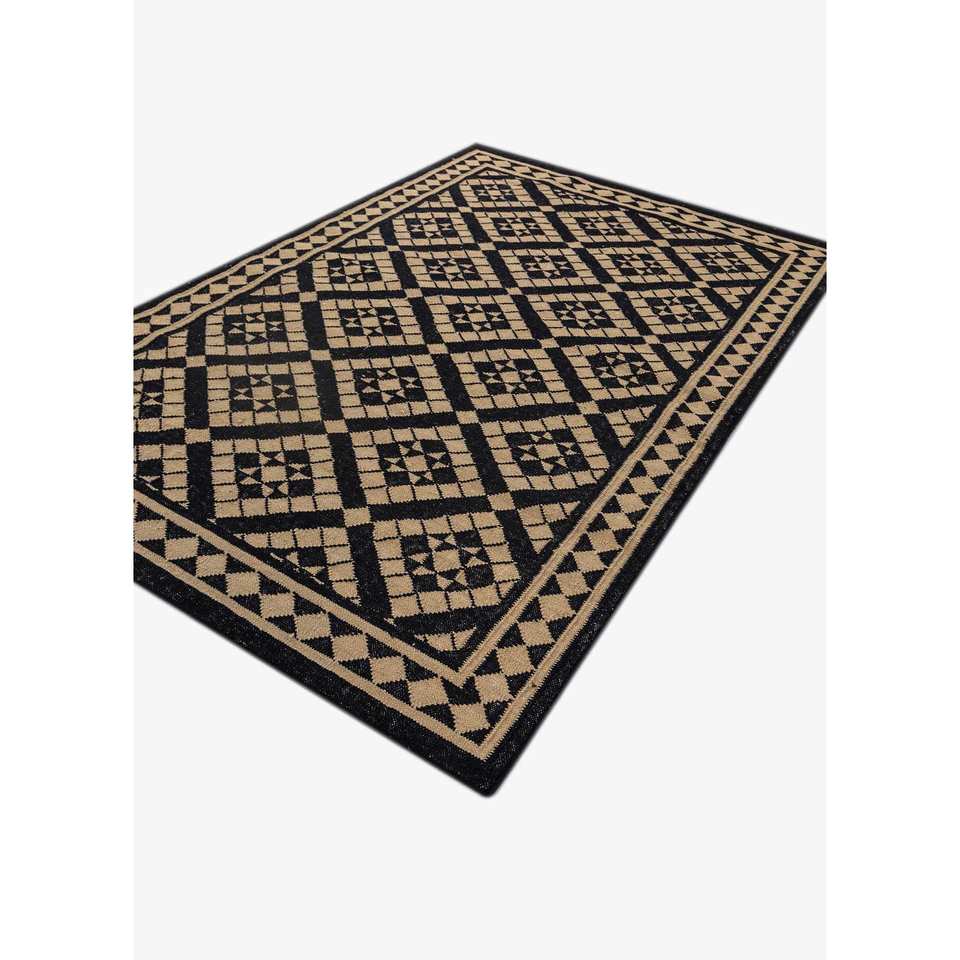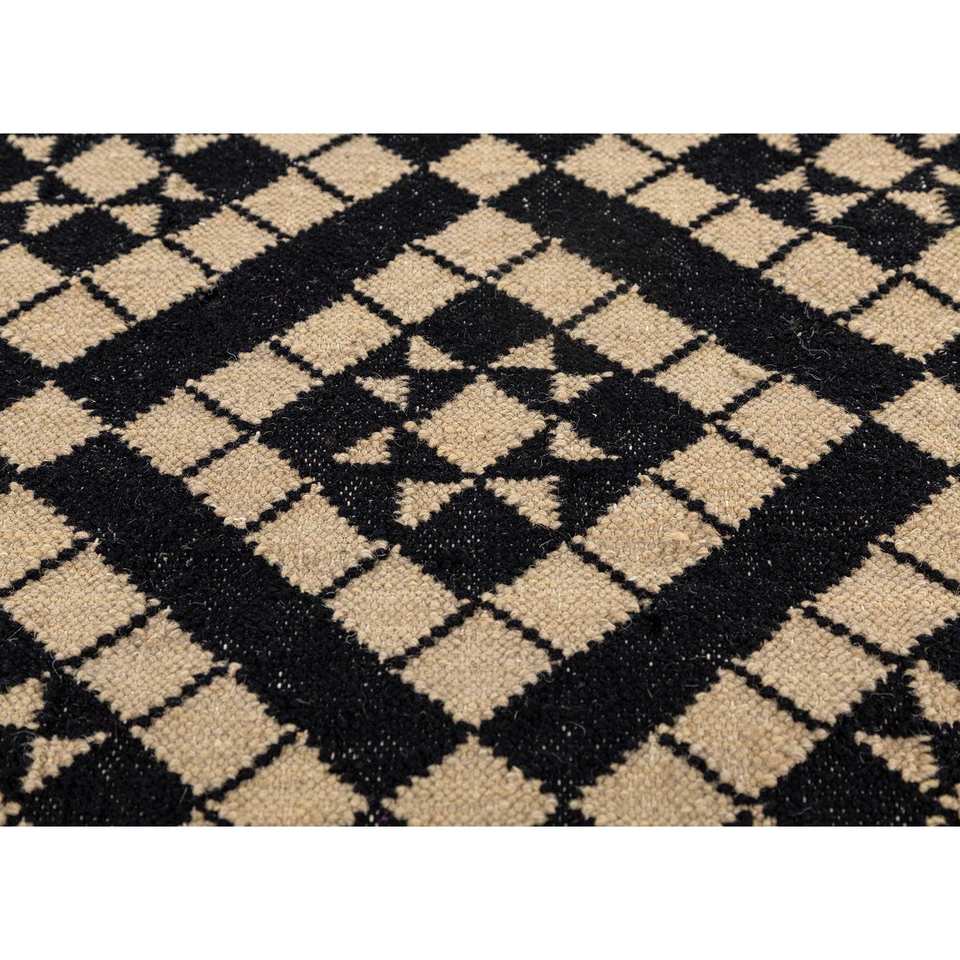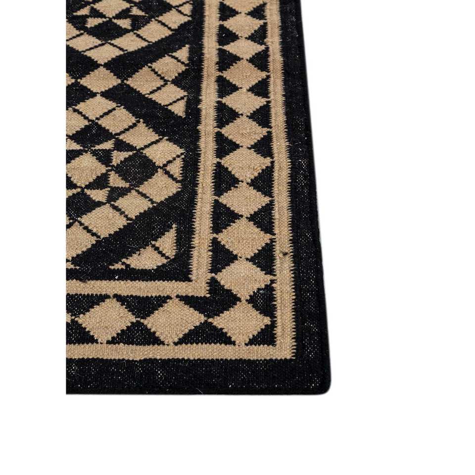 พรมขนสัตว์ทอลายเรียบอัลฮัมบราสีเทาและสีดำลายเรขาคณิตสำหรับบ้าน-ADWL-13162