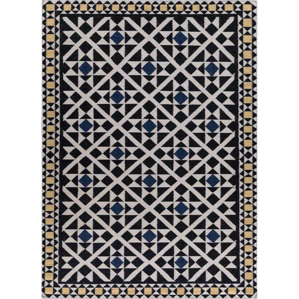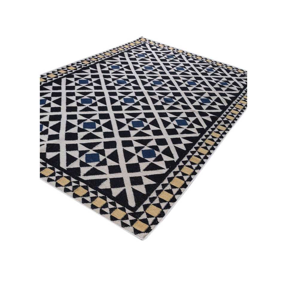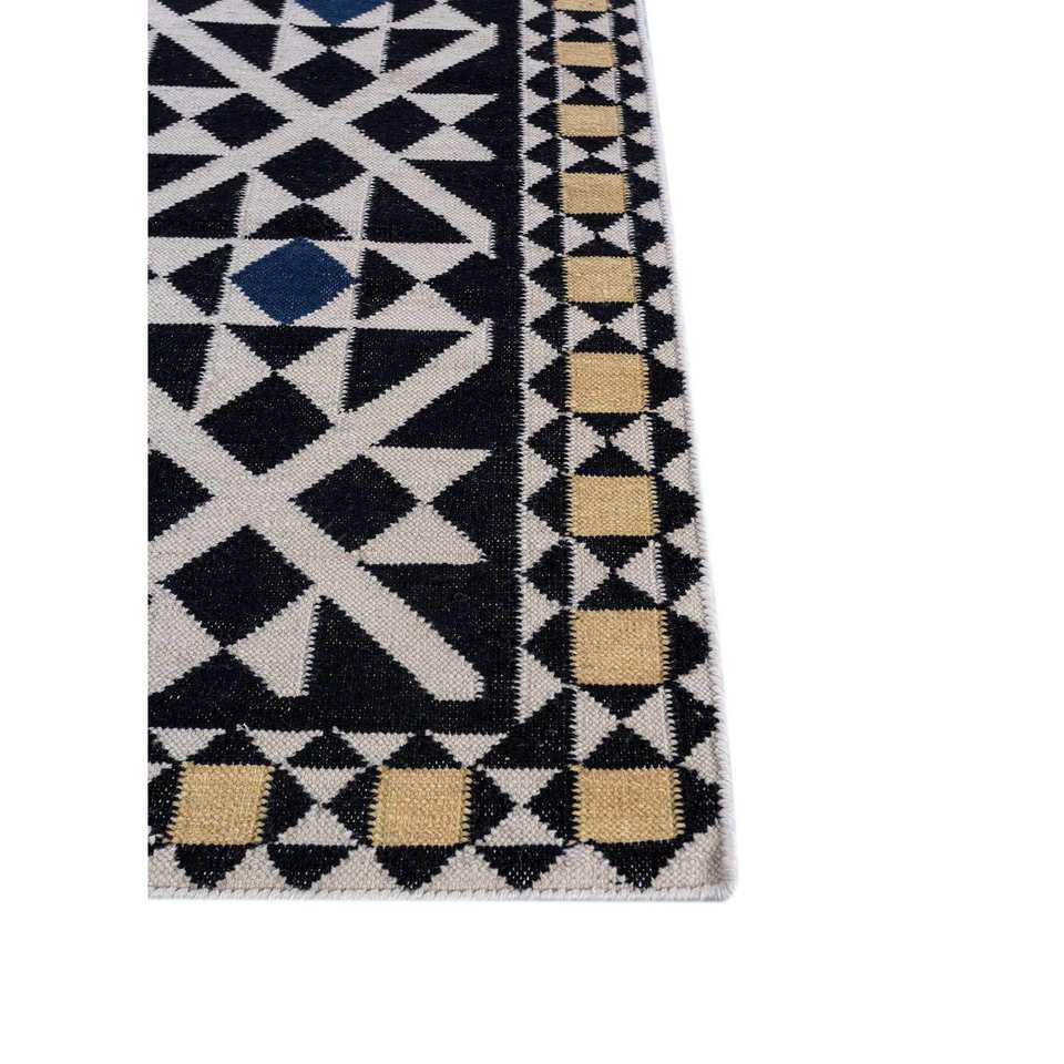 พรมขนสัตว์ทอลายเรียบอัลฮัมบราสีเทาและสีดำลายเรขาคณิตสำหรับบ้าน-ADWL-13161