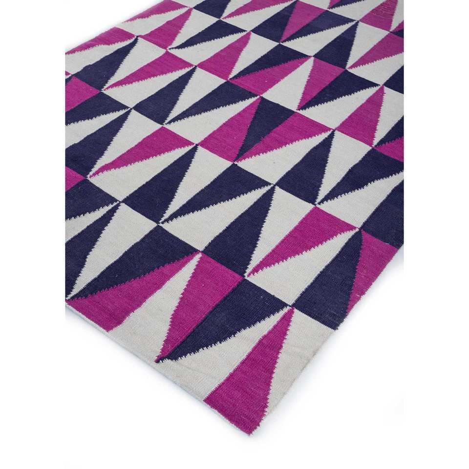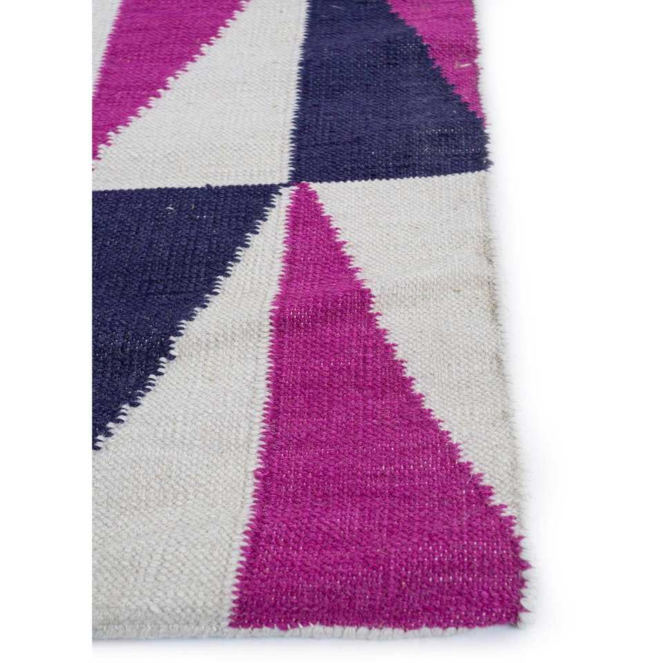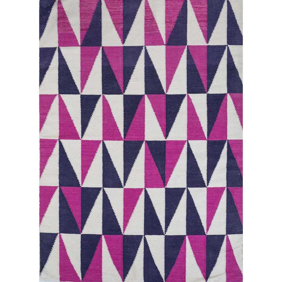 พรมขนสัตว์ทำมืออัลฮัมบรา สีชมพูและสีม่วง ทอลายเรียบแบบเรขาคณิต สำหรับห้องโถงและห้องนอน-รุ่น Dwrm-7010