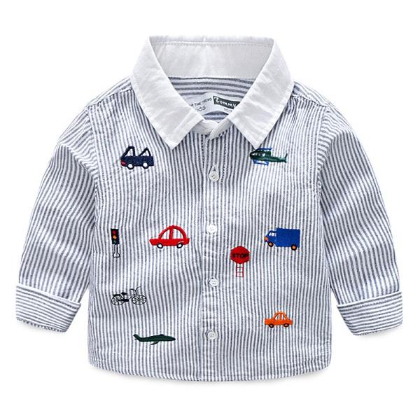 อาลี เบสท์เซลเลอร์สเสื้อเชิ้ตแขนยาวผ้าฝ้ายลายปักลายรถสำหรับเด็กชายอายุ 3 ปี