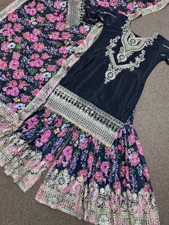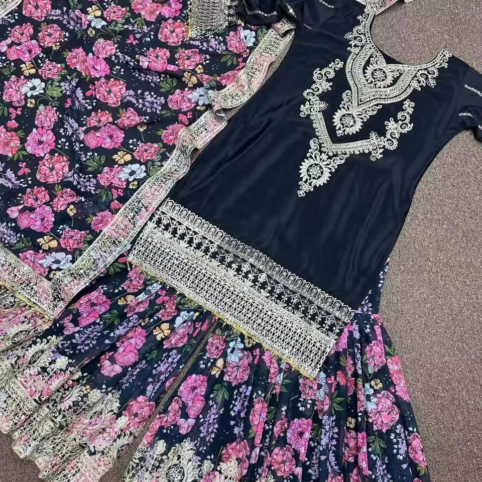 Alia Cutผู้หญิงสวย 3 ชิ้นDesigner Shrararaชุดชุดผู้หญิงพิมพ์ที่สวยงามKurtiพร้อมSharara & Dupattaสําหรับผู้หญิง
