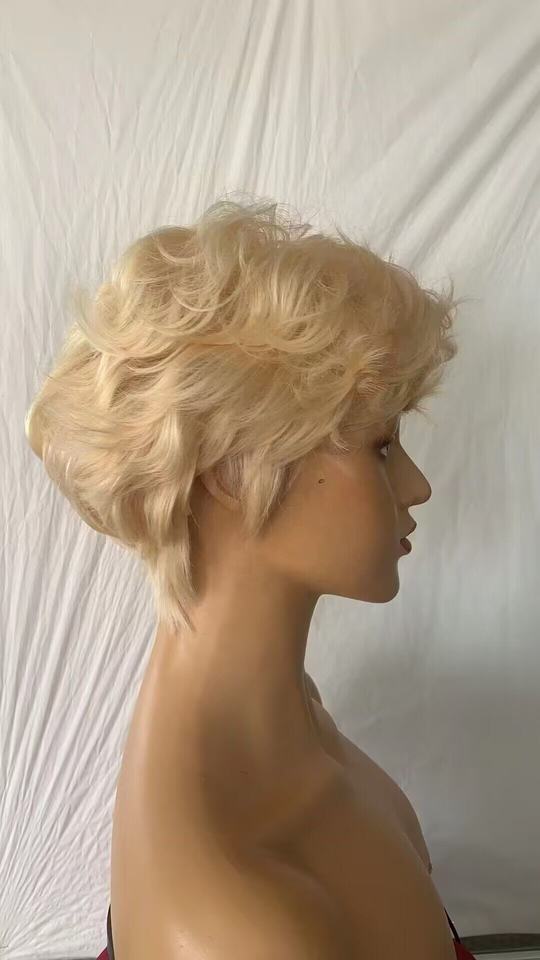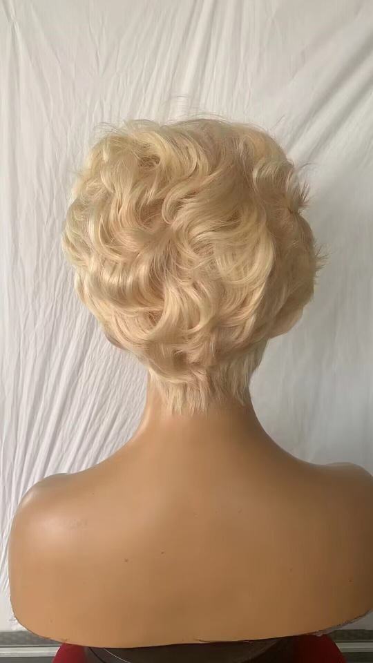 วิกผมสีบลอนด์เปอร์รูควิกผมสั้นแบบหยิกขนาด13x4 13X6วิกผมพิกซี่ทรงบราซิล