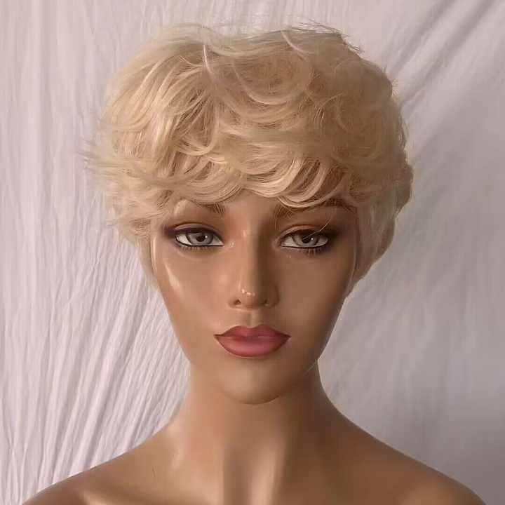 วิกผมทรงพิกซี่สีบลอนด์ขายดีของ Alia วิกผมคุณภาพสูงทรงพิกซี่สั้นแบบหยิก วิกผมลูกไม้ 13x4 13x6 ทรงผมพิกซี่บราซิล
