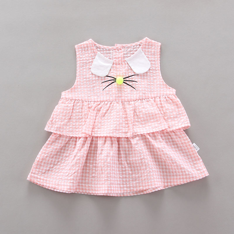 เสื้อผ้าเด็กผู้หญิงฤดูร้อนน่ารักจากซัพพลายเออร์อาลีบาบาจีน ชุดแขนกุดลายสก็อตสีชมพูสไตล์เกาหลีแบบเปิดไหล่สำหรับเจ้าหญิงตัวน้อย