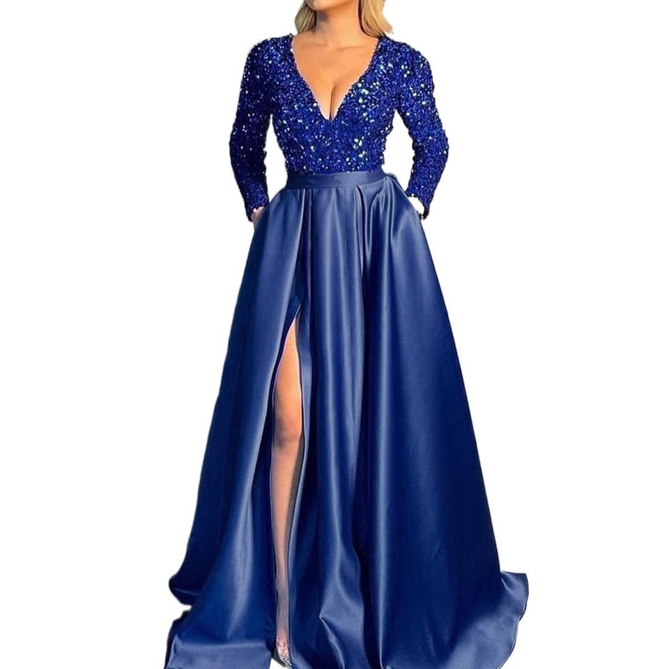 ชื่อผลิตภัณฑ์:ชุดราตรีลูกไม้แขนยาวสีน้ำเงินสำหรับผู้หญิงชุดราตรีลูกไม้