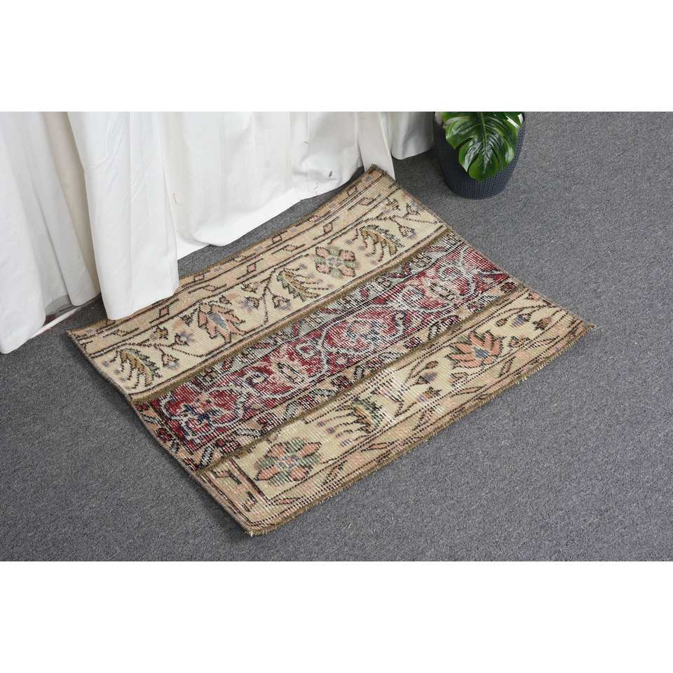 พรมตุรกีสไตล์วินเทจพิเศษจาก Alibaba ขนาด180ซม. x 220ซม. พื้นที่ขนาดใหญ่สีเบจสีแดงมีการออกแบบปะต่อวัสดุขนสัตว์ด้านหลัง