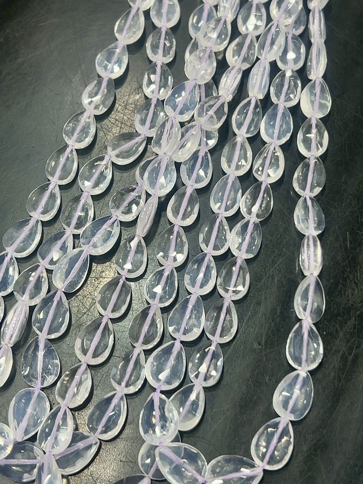 ลูกปัดควอตซ์น้ำแข็งธรรมชาติทรงหยดน้ำเจียระไนแบบเหลี่ยม ยี่ห้อ Alif International ขนาด 16 นิ้ว เกรด AAA รับรองโดย CCGTC คุณภาพหรูหรา
