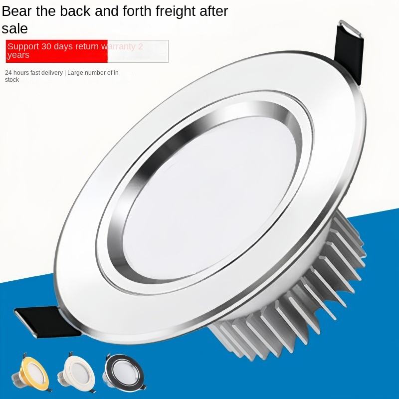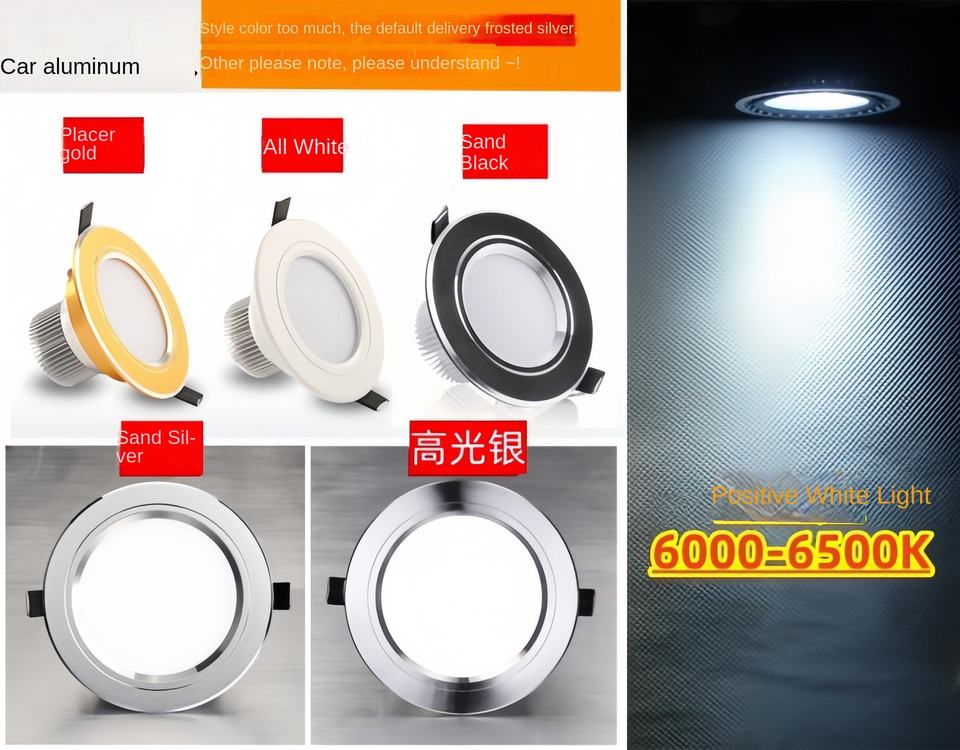 โคมไฟเพดาน LED แบบฝังขนาด4นิ้ว12W ทำจากอลูมิเนียมทั้งหมด6นิ้ว18วัตต์ดาวน์ไลท์เปิดร้านไฟบ้านสีดำ