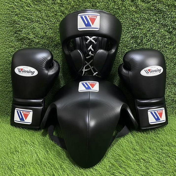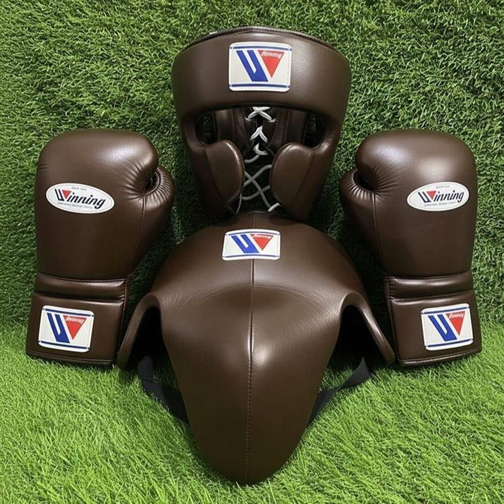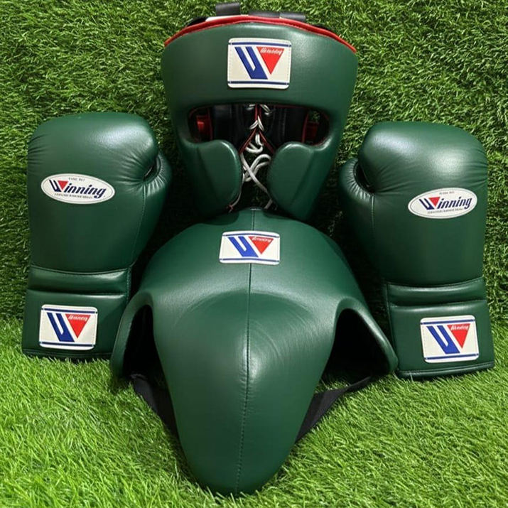 ชุดอุปกรณ์ป้องกันสำหรับการฝึกซ้อมและแข่งขันมวย รวมถึงหมวกกันกระแทก สนับแข้ง ถุงมือ พร้อมบริการสลักชื่อและโลโก้ส่วนตัว มีทุกสีให้เลือก