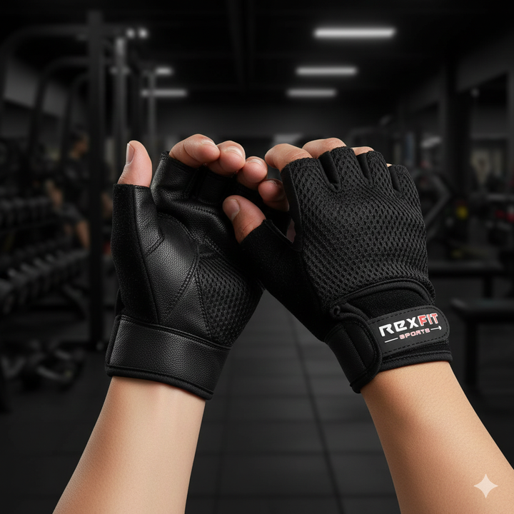 ถุงมือออกกำลังกายแบบครึ่งนิ้ว ทุกสี ไซส์พลัส พร้อมที่พยุงข้อมือ ระบายอากาศได้ดี สำหรับทุกเพศ เหมาะสำหรับการยกน้ำหนักหนัก