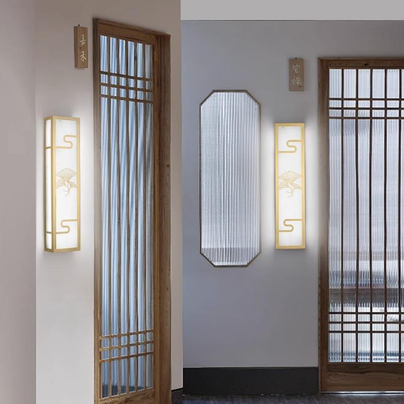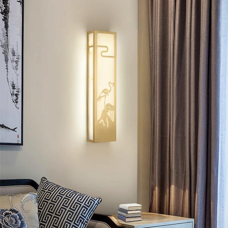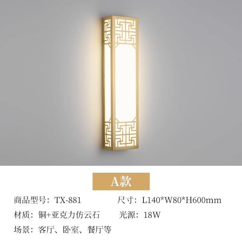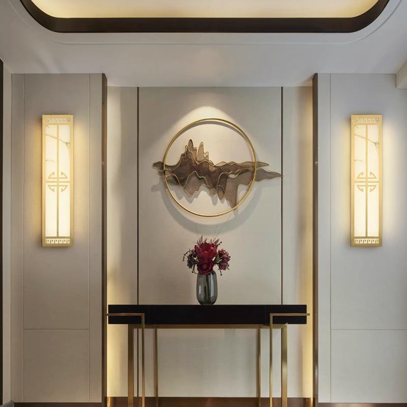 โคมไฟติดผนังกลางแจ้งสไตล์จีนทำจากทองแดงทั้งหมด โคมไฟติดผนังลายหินอ่อนแบบใหม่สำหรับห้องนั่งเล่น ห้องนอน วิลล่า ลานบ้าน ข้างเตียง