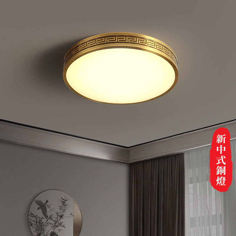 โคมไฟเพดาน LED ทองแดงทั้งหมด สไตล์จีนใหม่ สำหรับห้องนอนใหญ่ โคมไฟทองแดงสไตล์จีนเรียบง่าย สำหรับห้องทำงาน โถงทางเข้า