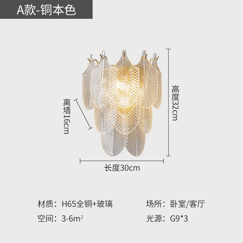 โคมไฟติดผนังครึ่งวงกลมหรูหราทำจากทองแดงแท้ ประดับคริสตัล ใบไม้ และเปลือกหอย สำหรับห้องนั่งเล่นและห้องนอน ขายส่ง