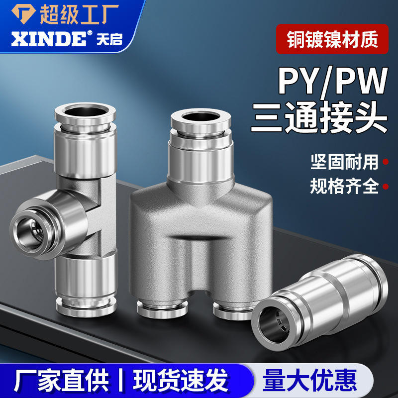 ข้อต่อท่อลมแบบนิเกิลชุบทองแดงทั้งหมด ทนความร้อนสูง ทนแรงดันสูง ทนการกัดกร่อน แบบเชื่อมต่อเร็ว รูปตัว T สำหรับ
