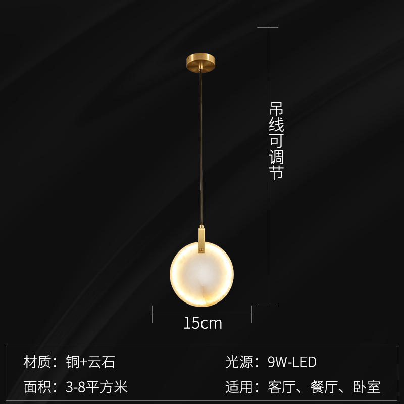 โคมไฟห้อยเพดานทองแดงแท้ ดีไซน์หินอ่อนสเปน สไตล์จีน หรูหรา หัวเดียว สำหรับโต๊ะอาหาร บาร์ แสงไฟสร้างสรรค์