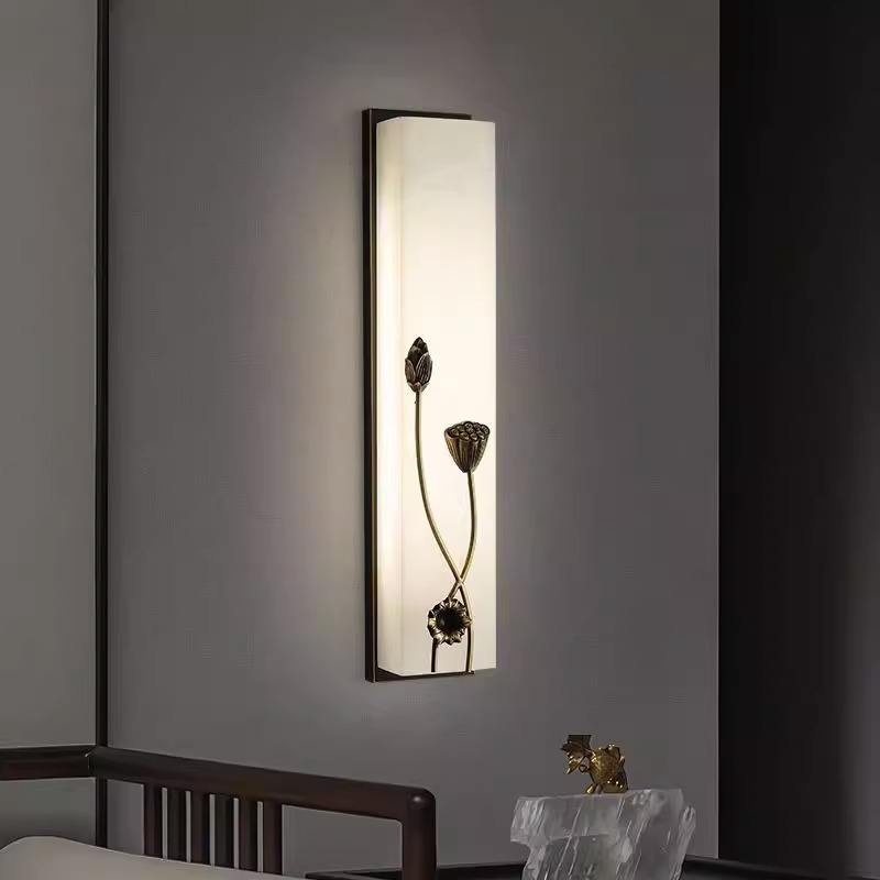 โคมไฟติดผนังสไตล์เซนทำจากทองแดงทั้งหมด ดีไซน์แบบจีนใหม่ สำหรับห้องนั่งเล่น ฉากหลังทีวี ห้องนอน ทางเดิน โคมไฟติดผนัง