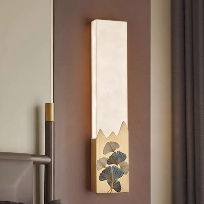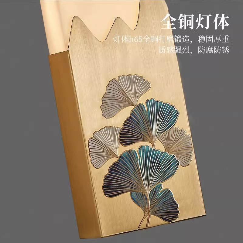 โคมไฟติดผนังสไตล์เซนทองแดงทั้งหมดสำหรับห้องนั่งเล่นห้องนอนโคมไฟทางเดินหินอ่อนเคลือบสีสไตล์จีนแบบใหม่