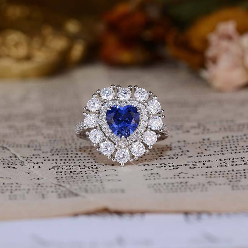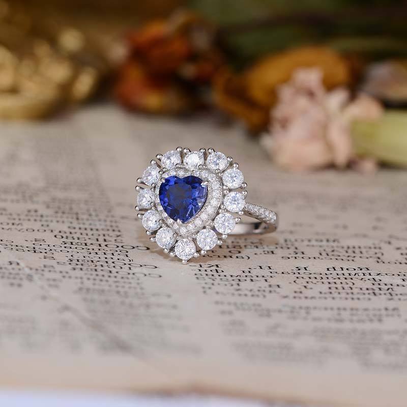 ต่างหูแฟชั่นทรงหัวใจประดับไพลินสังเคราะห์ 1.2 กะรัต พร้อมแหวนซิลิโคนประดับอัญมณี ทำจากเงินสเตอร์ลิงคุณภาพสูง