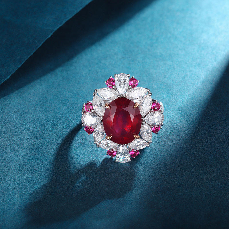 แหวนโอปอล 6 กะรัต แฟชั่นทันสมัย ประดับทับทิมสังเคราะห์ ดีไซน์วินเทจ ชุบทองโรเดียมคุณภาพสูง ตัวเรือนแบบกรงเล็บ รับรองโดยผู้ตรวจสอบอิสระ