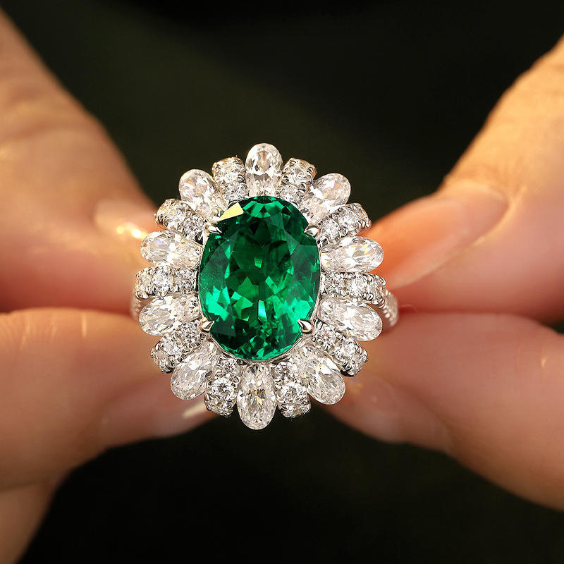 แหวนแต่งงานทรงรีวินเทจประดับมรกตสังเคราะห์สุดหรูหราทันสมัย