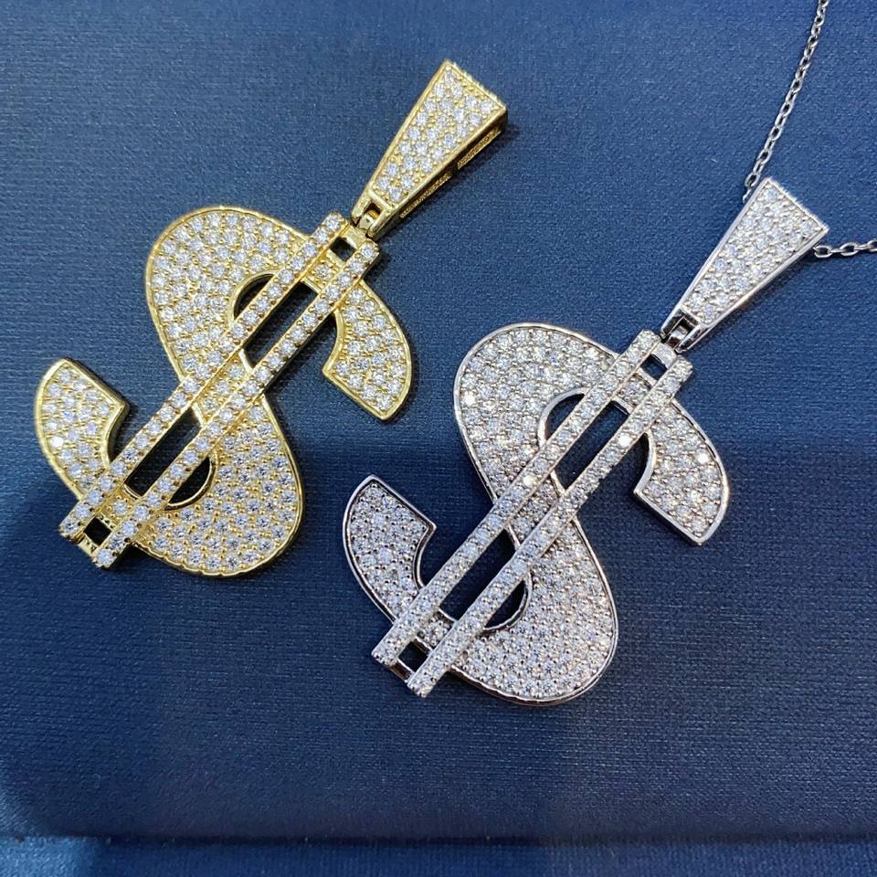 สร้อยคอฮิปฮอปดีไซน์ดอลลาร์เงินสเตอร์ลิงประดับโมอิสซาไนต์รูปทรงแฟชั่นทุกแบบ