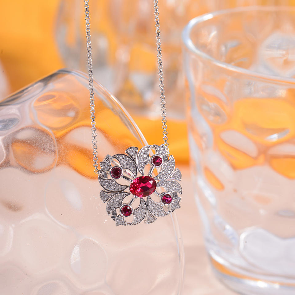 นาฬิกาเข็มกลัดจี้เงินแท้ประดับทับทิมสังเคราะห์ 1.5 กะรัต ดีไซน์วินเทจ ชุบทองคำขาว สำหรับผู้หญิง ได้รับการรับรองจากผู้ตรวจสอบอิสระ