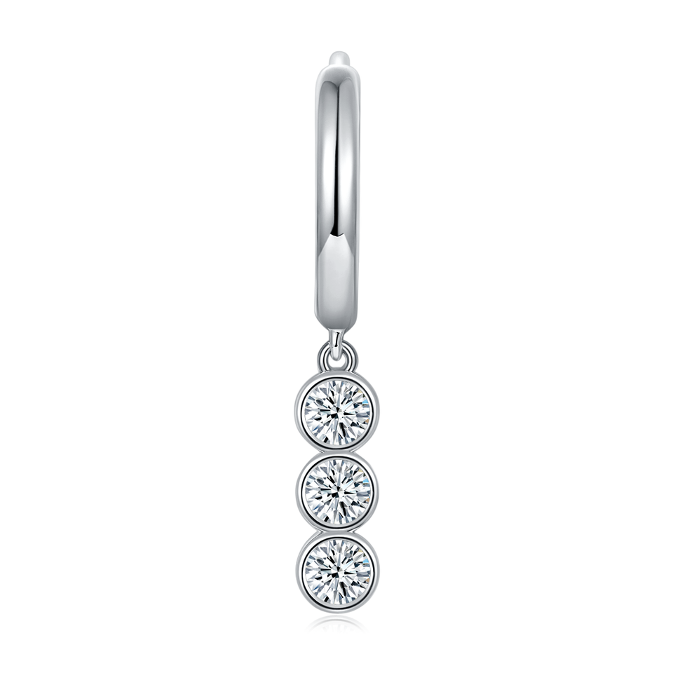 ต่างหูห่วงประดับมอสซาไนต์ทรงพู่เก๋ไก๋ทันสมัยจาก All Fashion ขนาด 3 มม. 4 มม. รูปทรงมรกต เงินแท้ ประดับด้วยซิลิโคนรูปกุญแจ