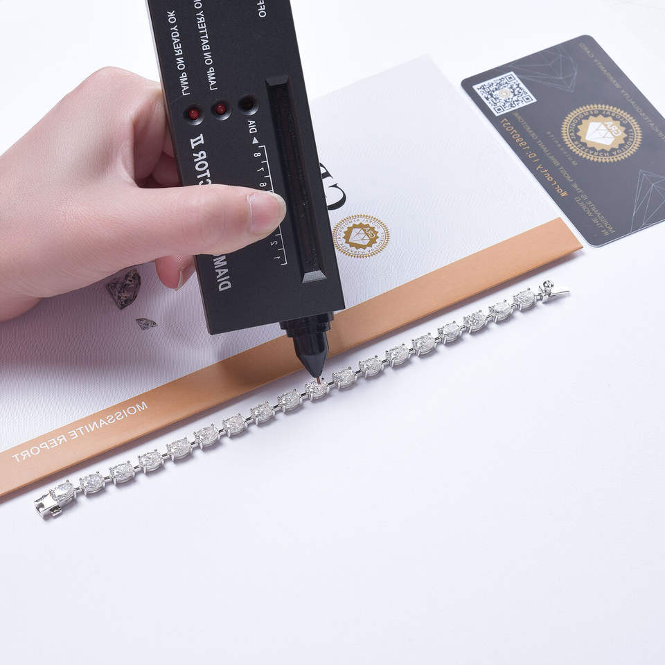 กำไลข้อมือดีไซน์เก๋ไก๋รูปทรงเรขาคณิต ประดับด้วยจี้ห้อยโซ่และลิงค์ แบบฮิปฮอป ประดับเพชรโมอิสซาไนต์ ขายส่งสำหรับงานปาร์ตี้