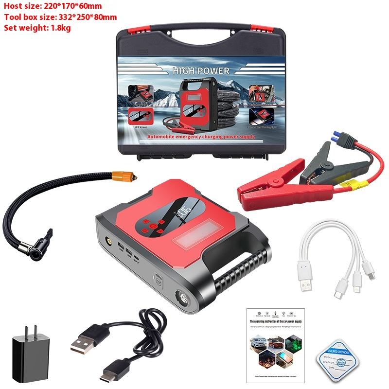 แบตสำรองแบตเตอรี่รถยนต์แบบ all-in-one 1000A เครื่องปั๊มอากาศสำหรับสตาร์ทรถสิ่งประดิษฐ์ในปัจจุบันสูงสุดสำหรับรถจักรยานยนต์รถบรรทุก2000A สำหรับกรณีฉุกเฉิน
