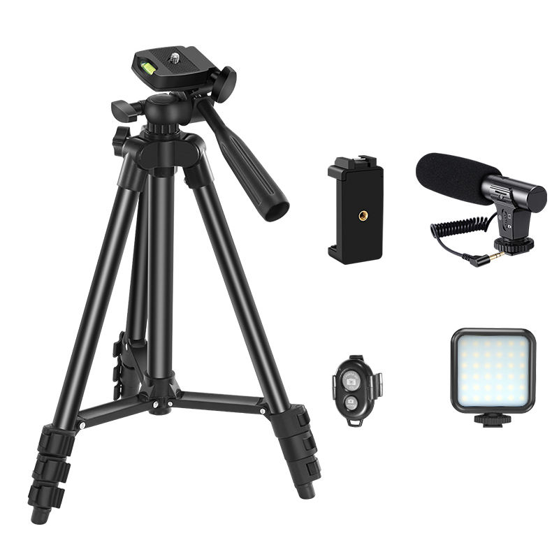 ชุดมินิถ่ายวิดีโอ vlogging สำหรับสมาร์ทโฟนแบบ all-in-one พร้อมปืนลูกซองไมโครโฟนที่วางโทรศัพท์ไฟเติมและขาตั้งกล้อง