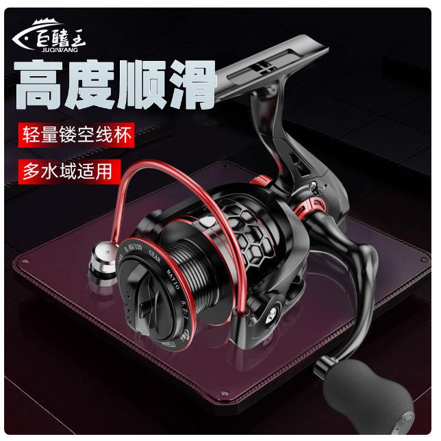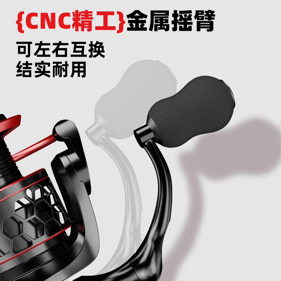 รอกตกปลาโลหะทั้งหมด แบบหมุนมือขวา สำหรับตกปลาทะเลและตกปลาหิน พร้อมด้ามจับสีแดงและดีไซน์รังผึ้ง