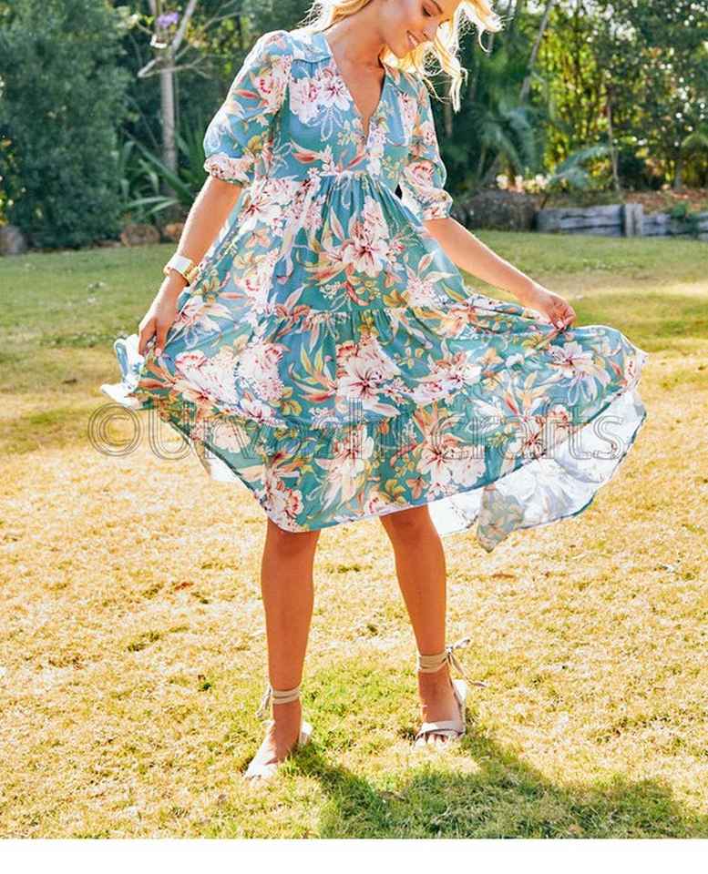 ชื่อผลิตภัณฑ์:เดรสมิดิมิ้นต์พิมพ์ลายวินเทจ