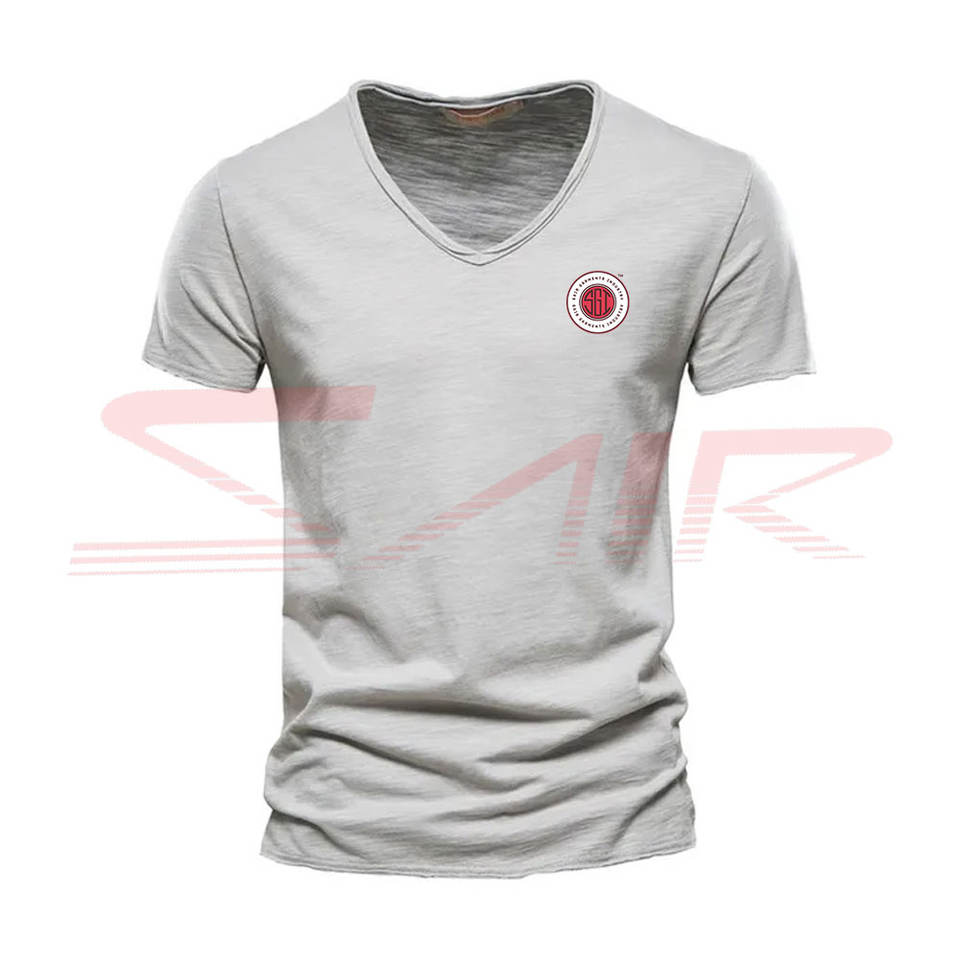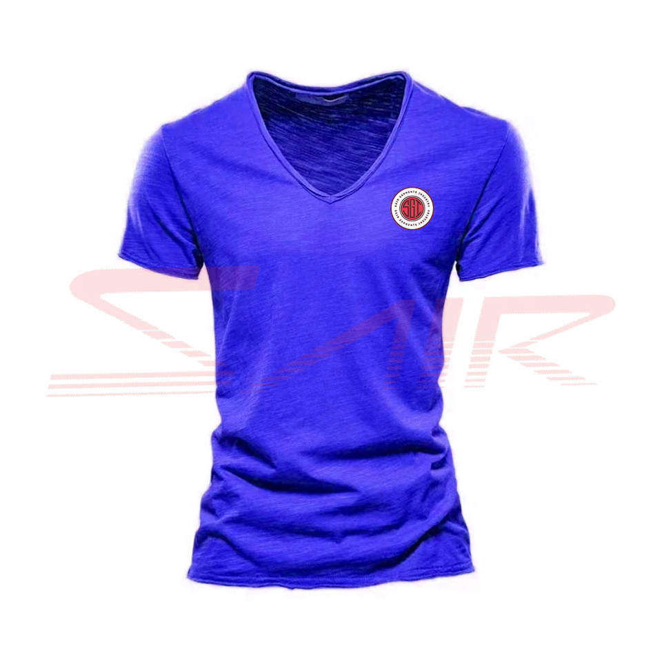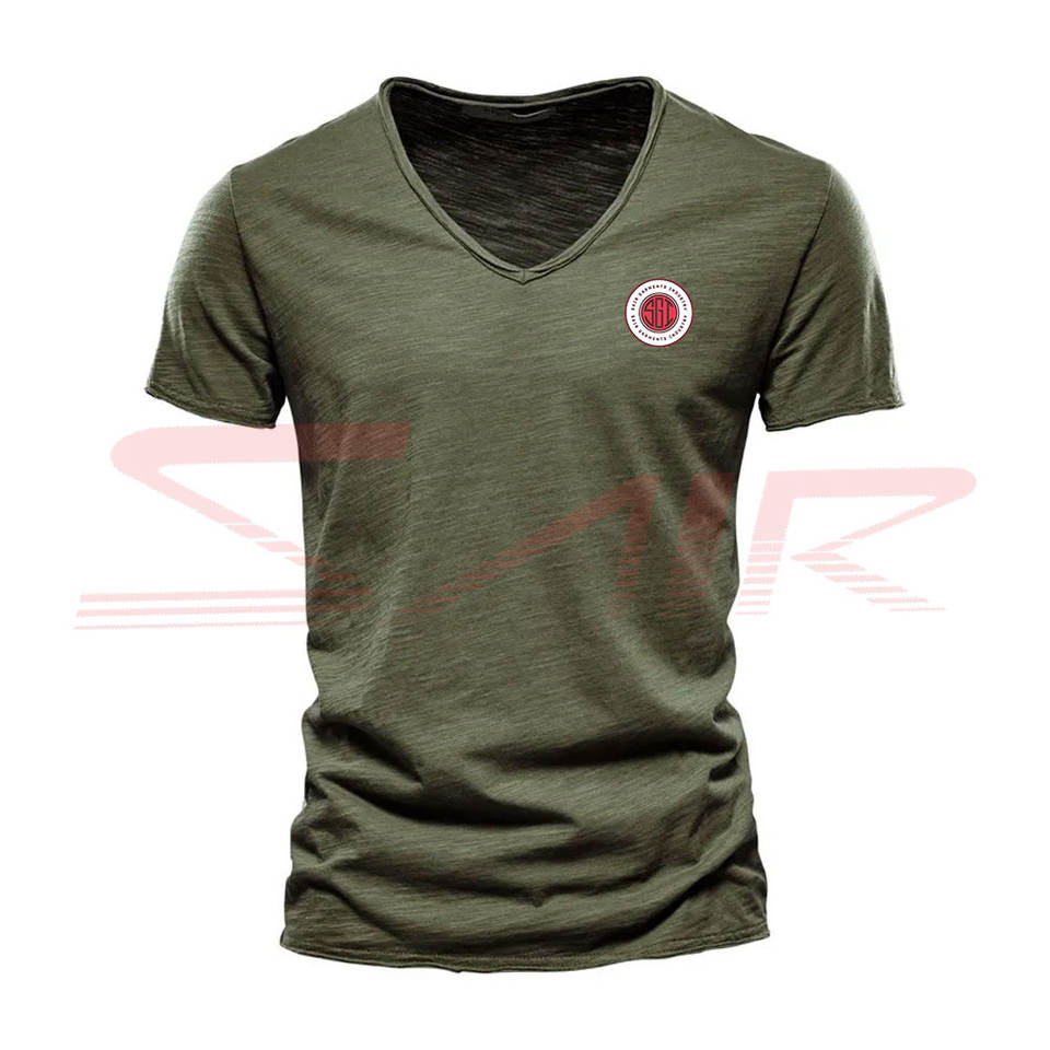 เสื้อยืดคอวีแขนสั้นผ้าฝ้าย 100% คุณภาพสูงใหม่ทั้งหมด ระบายอากาศได้ดี สวมใส่สบาย ดีไซน์สวยงามสำหรับผู้ชาย รับสั่งทำได้
