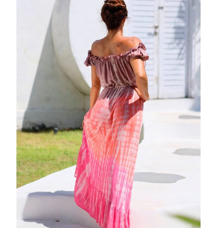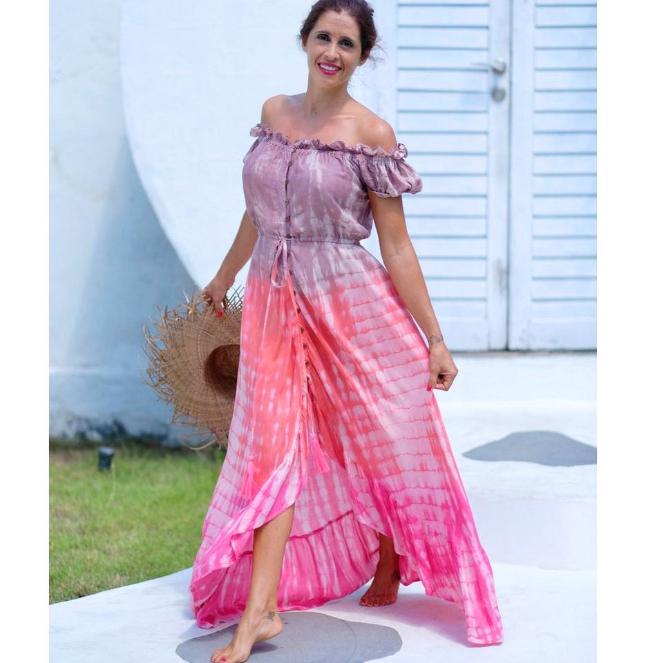 เดรสฤดูร้อนสไตล์โบฮีเมียนผ้าเรยอนย้อมสีแบบไท-ได ระบายอากาศได้ดี สำหรับผู้หญิงไซส์พลัส รุ่นใหม่ล่าสุด