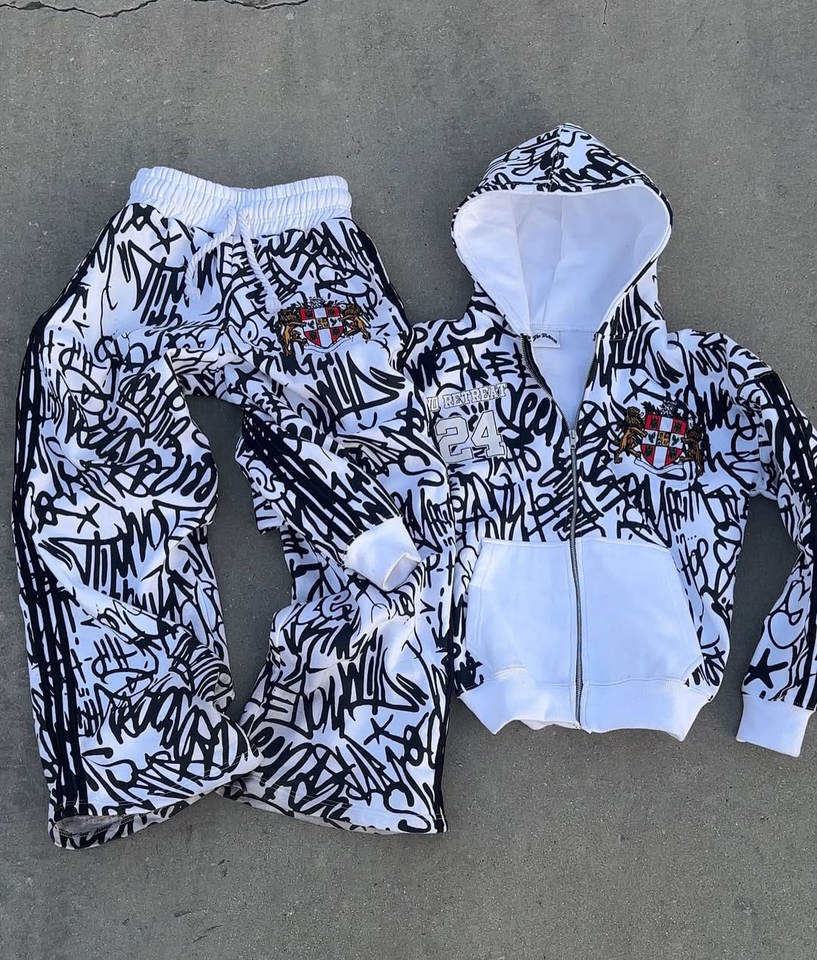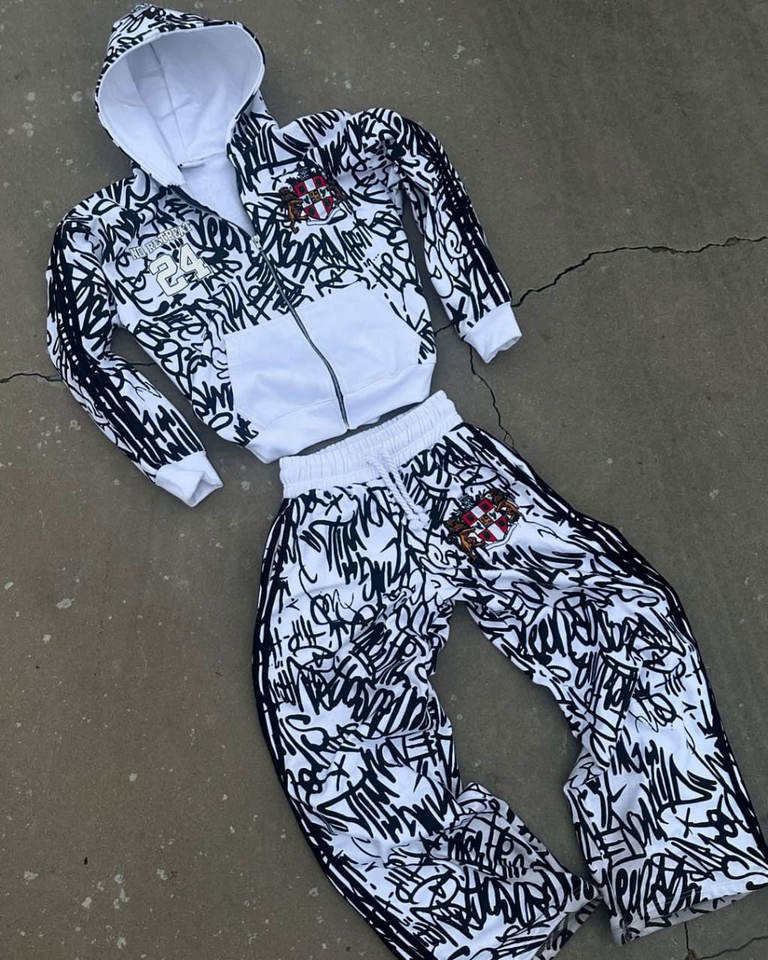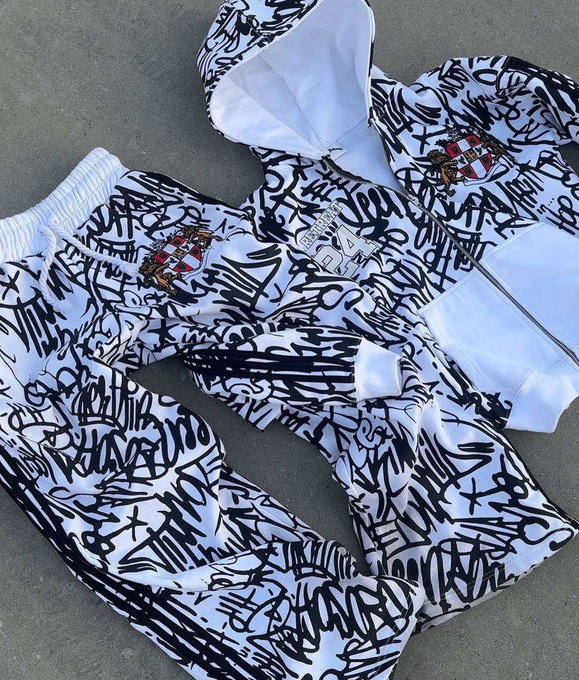 ชุดเสื้อฮู้ดพิมพ์ลายกราฟิกดิจิทัลแขนยาว พิมพ์โลโก้ตามสั่ง เสื้อฮู้ดน้ำหนักเบา กางเกงทรงหลวม
