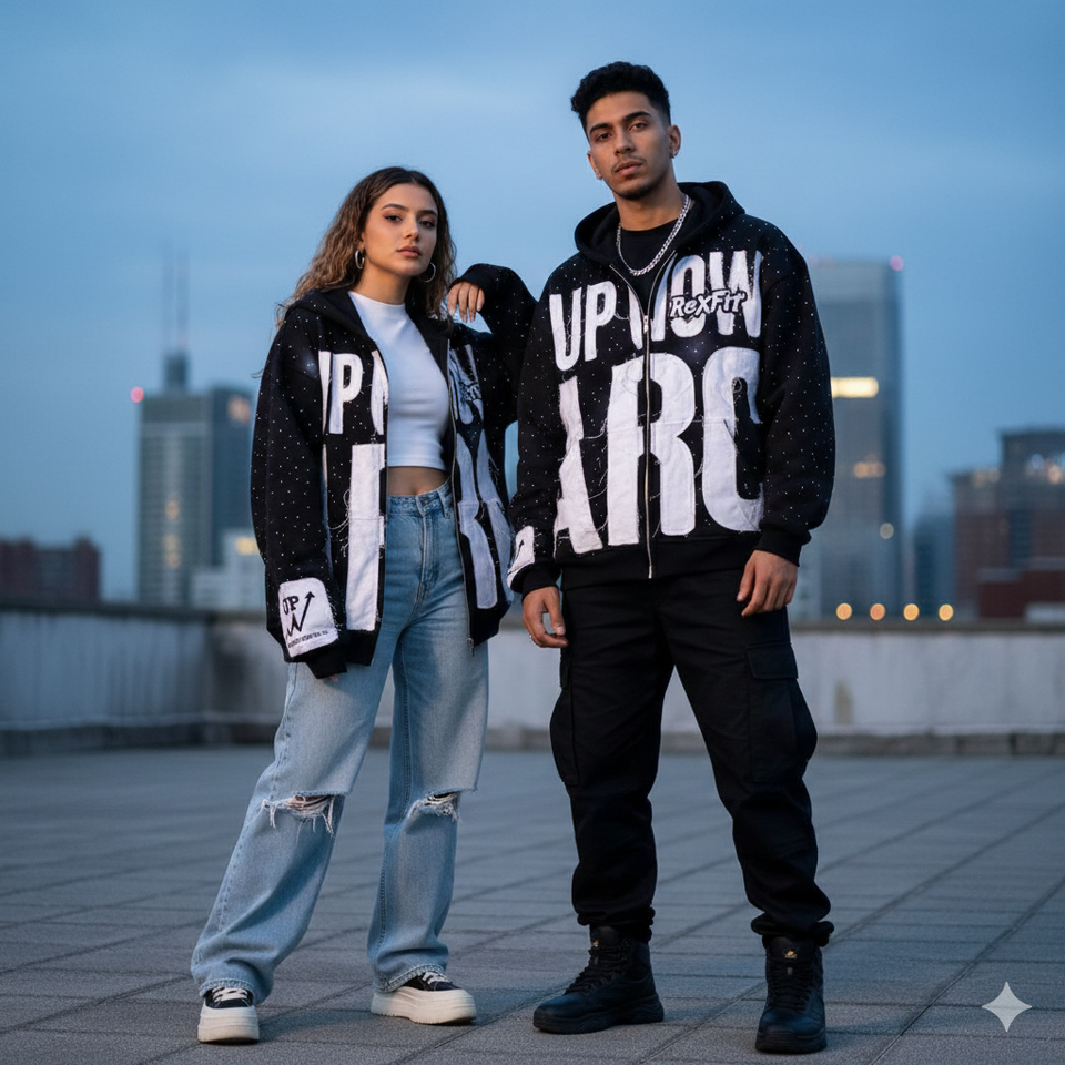 เสื้อฮู้ดซิปแบบยูนิเซ็กซ์ ทรงหลวม ไหล่ตก ผ้าเฟรนช์เทอร์รี่เนื้อหนา ปักลายแบบดิสเทรส แต่งคริสตัลทั่วตัว สีซีดแบบซันเฟด
