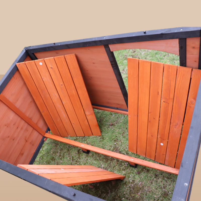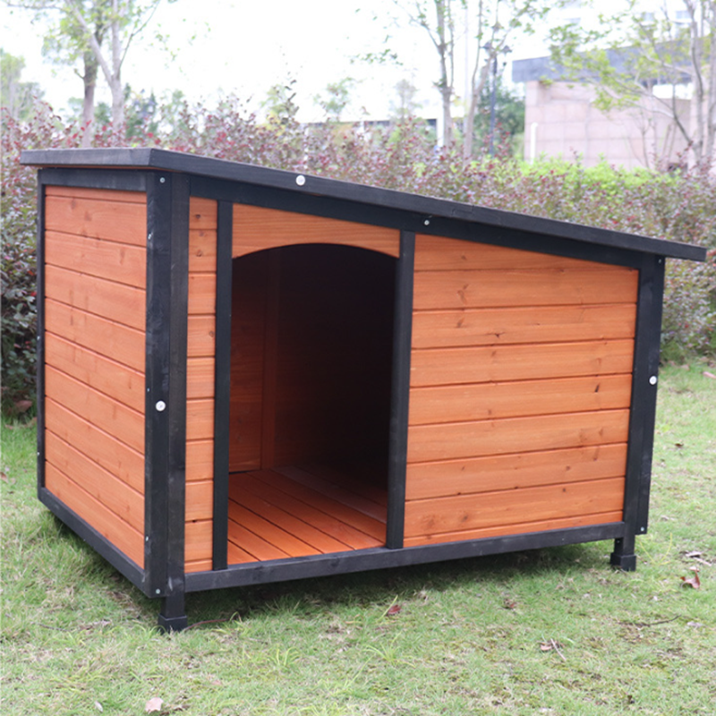 บ้านสุนัขไม้เนื้อแข็งกลางแจ้งทุกฤดูกาลพร้อมระบบป้องกันฝนและแสงแดดกรงสัตว์เลี้ยงสากลสําหรับสุนัขขนาดใหญ่และเล็ก