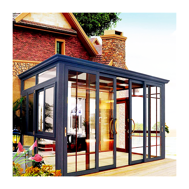 All-Season Sunroom with Aluminum Alloy Frame Glass Board Orangery Winter Garden House Triangle Roof Molding for Comfort Living