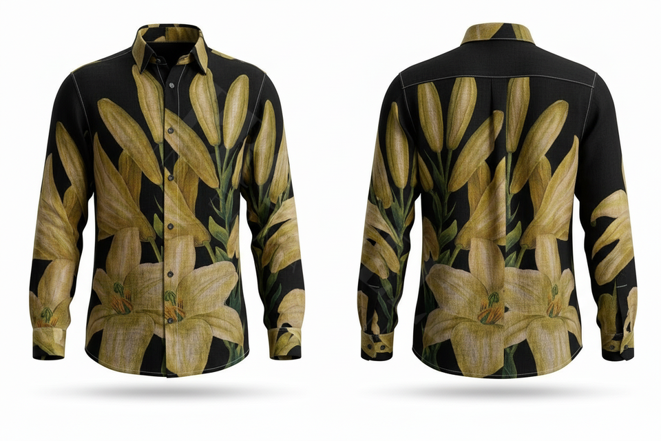เสื้อเชิ้ตแขนยาวพิมพ์ลายดอกไม้ตามสั่งสำหรับผู้ชายทุกฤดูกาล ทรงทันสมัย สวมใส่สบาย แฟชั่น เสื้อสั่งตัดได้