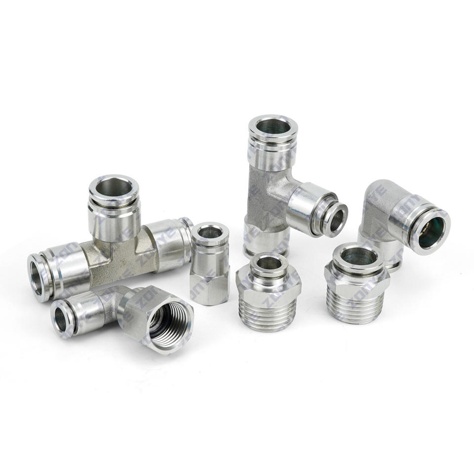 ข้อต่อนิวเมติกสแตนเลสทั้งหมด DN15ปลั๊กแบบเร็ว PLF ทีอุปกรณ์ดับเพลิงที่ข้อศอก