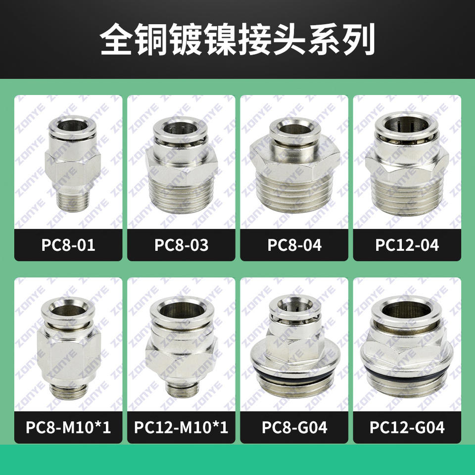 PC12-M10*1 ทองแดงชุบนิกเกิลทั้งหมด