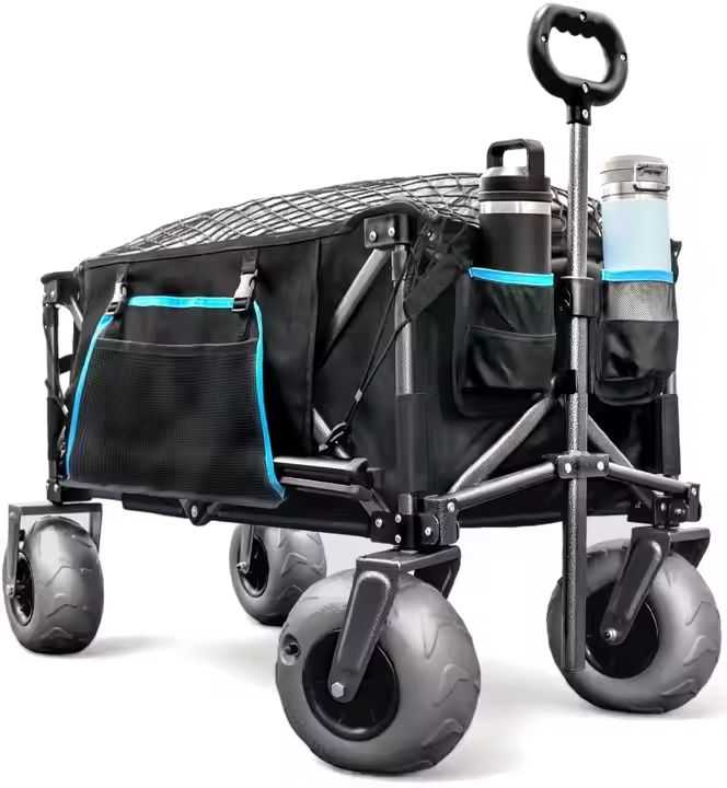 รถเข็นชายหาดสำหรับทุกพื้นที่พร้อมล้อบอลลูนขนาด9 "รถเข็นสำหรับตั้งแคมป์กลางแจ้ง