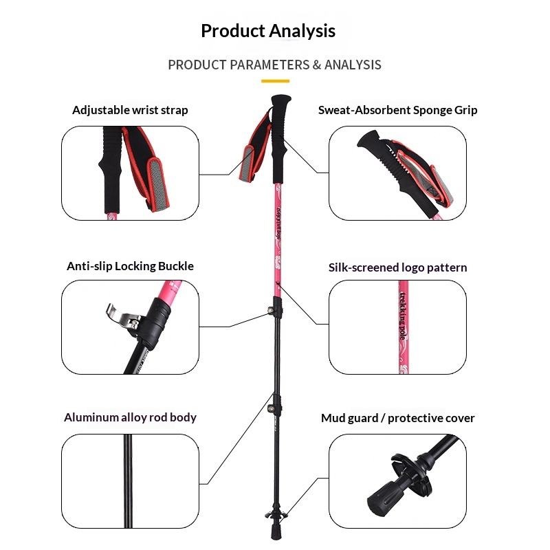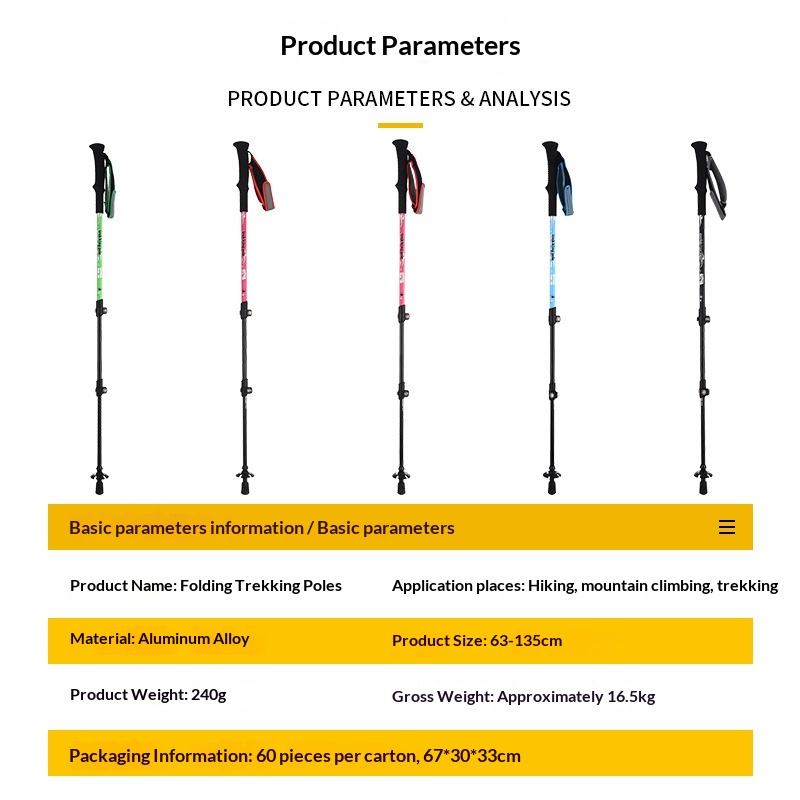 ไม้เท้าเดินป่าแบบพับได้สำหรับทุกสภาพพื้นผิว - ไม้เท้าปีนเขาป้องกันการลื่นและดูดซับเหงื่อสำหรับการปีนเขา