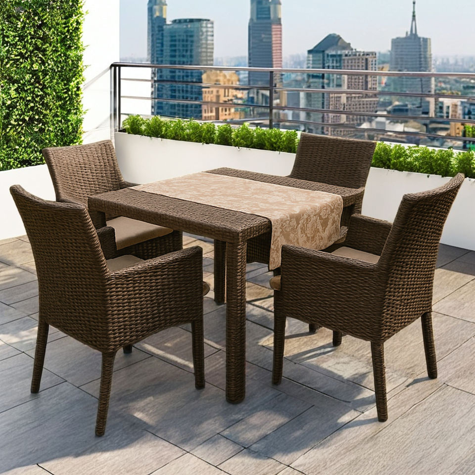 ชุดรับประทานอาหารทำจากหวาย4ชิ้นสำหรับทุกสภาพอากาศมีโต๊ะรับประทานอาหารและเก้าอี้หุ้มเบาะที่ทันสมัย