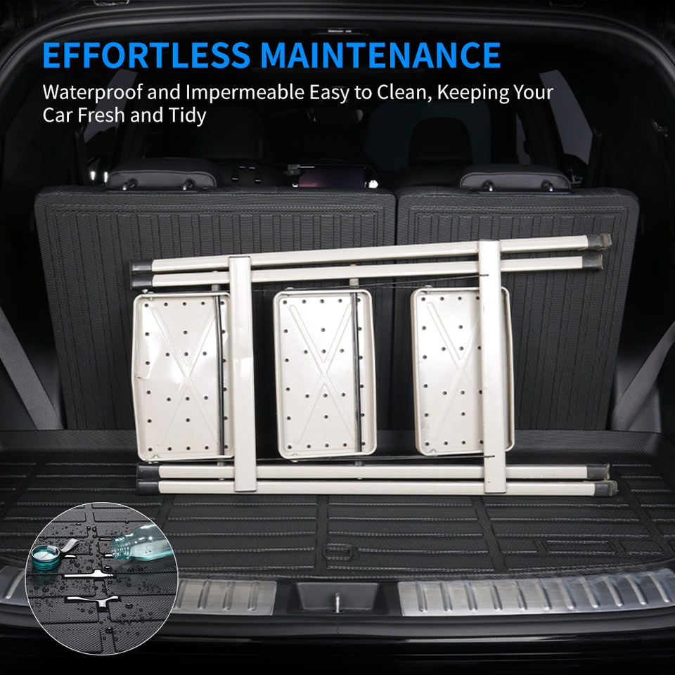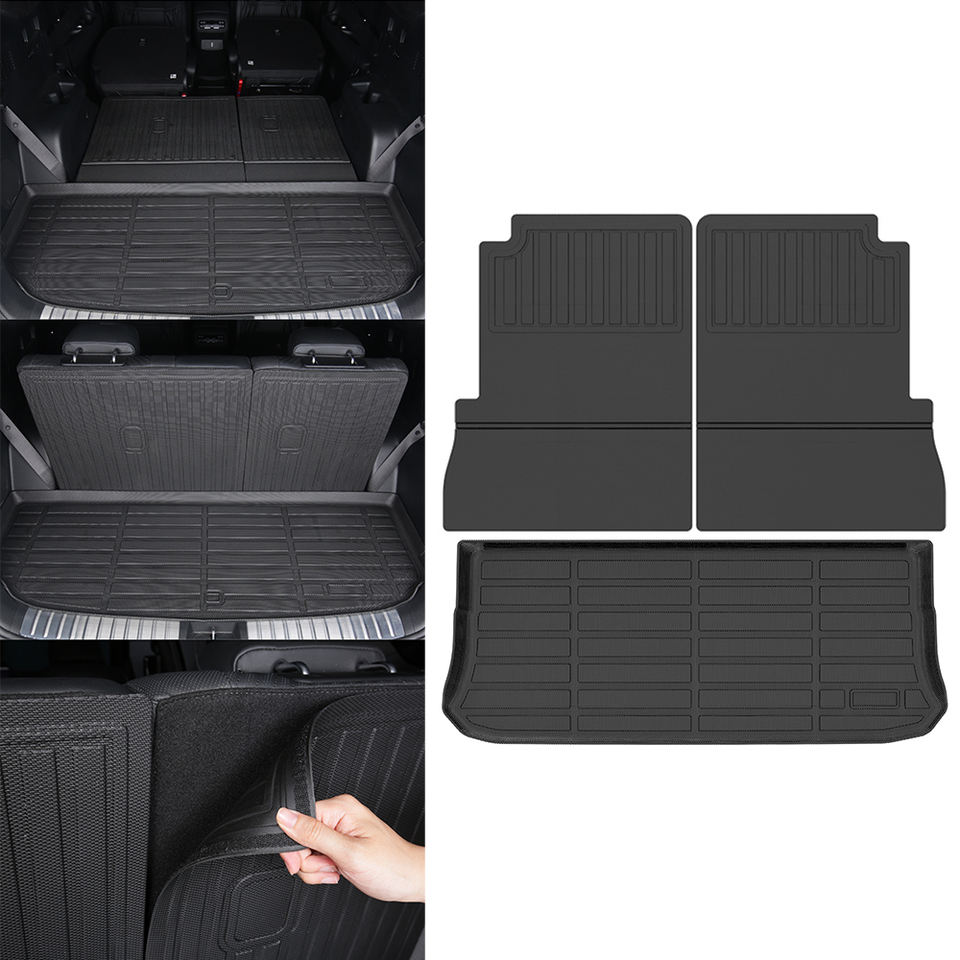 แผ่นรองพื้นรถยนต์ 3 มิติ TPE สำหรับทุกสภาพอากาศ ป้องกันเบาะหลังที่นั่งที่วางสัมภาระท้ายรถ สำหรับรถยนต์ Mercedes Benz Eqs Suv 7 ที่นั่ง ปี 2022-2025