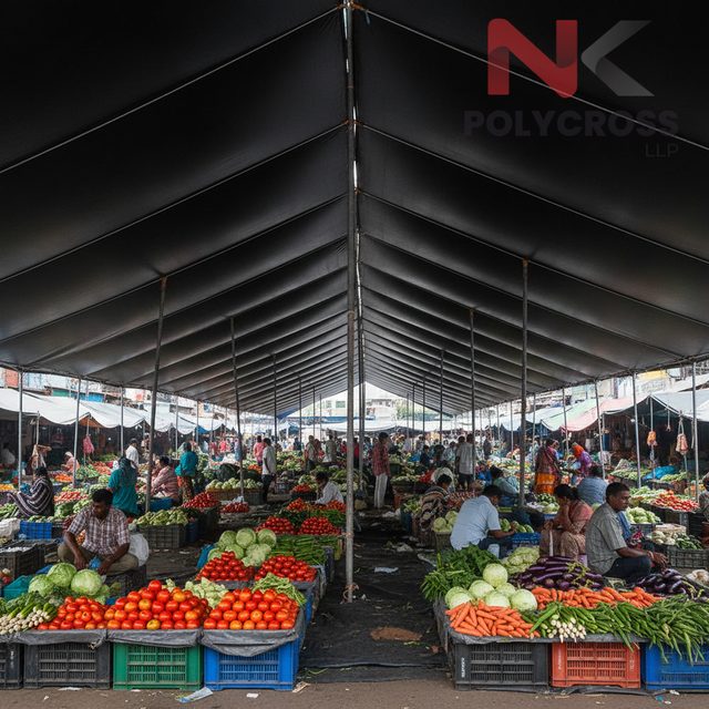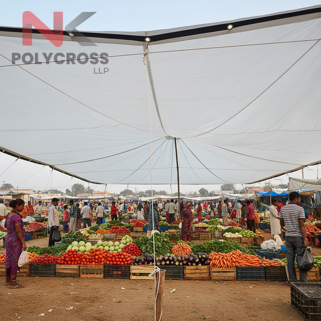 ผ้าใบคลุมตลาดผักกันทุกสภาพอากาศ ผ้าใบคลุมตลาดผักเคลือบสารป้องกันรังสียูวี สำหรับใช้งานกลางแจ้ง